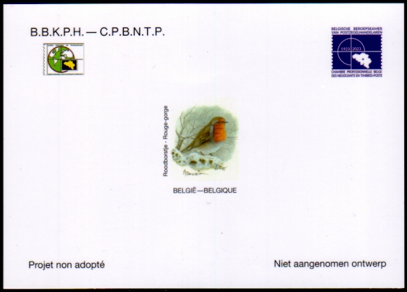 A l'occasion d'expositions philatéliques internationales ou importantes, telles que PHILEURO, BELGICA ou ANTWERPFILA, la Chambre Professionnelle Belge des Négociants en Timbres-Poste (CPBNTP) éditent souvent un projet non adopté (NA) d'un timbre ou d'un bloc réalisé par un artiste belge.
